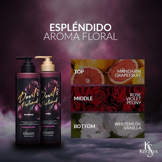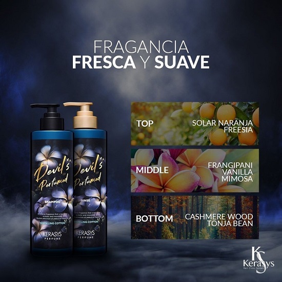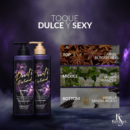 Kerasys Devil’s Perfumed se recomienda a todo tipo de cabello que necesita hidratación, brillo y sedosidad, con el agregado del aroma adictivo y marcante de larga duración.